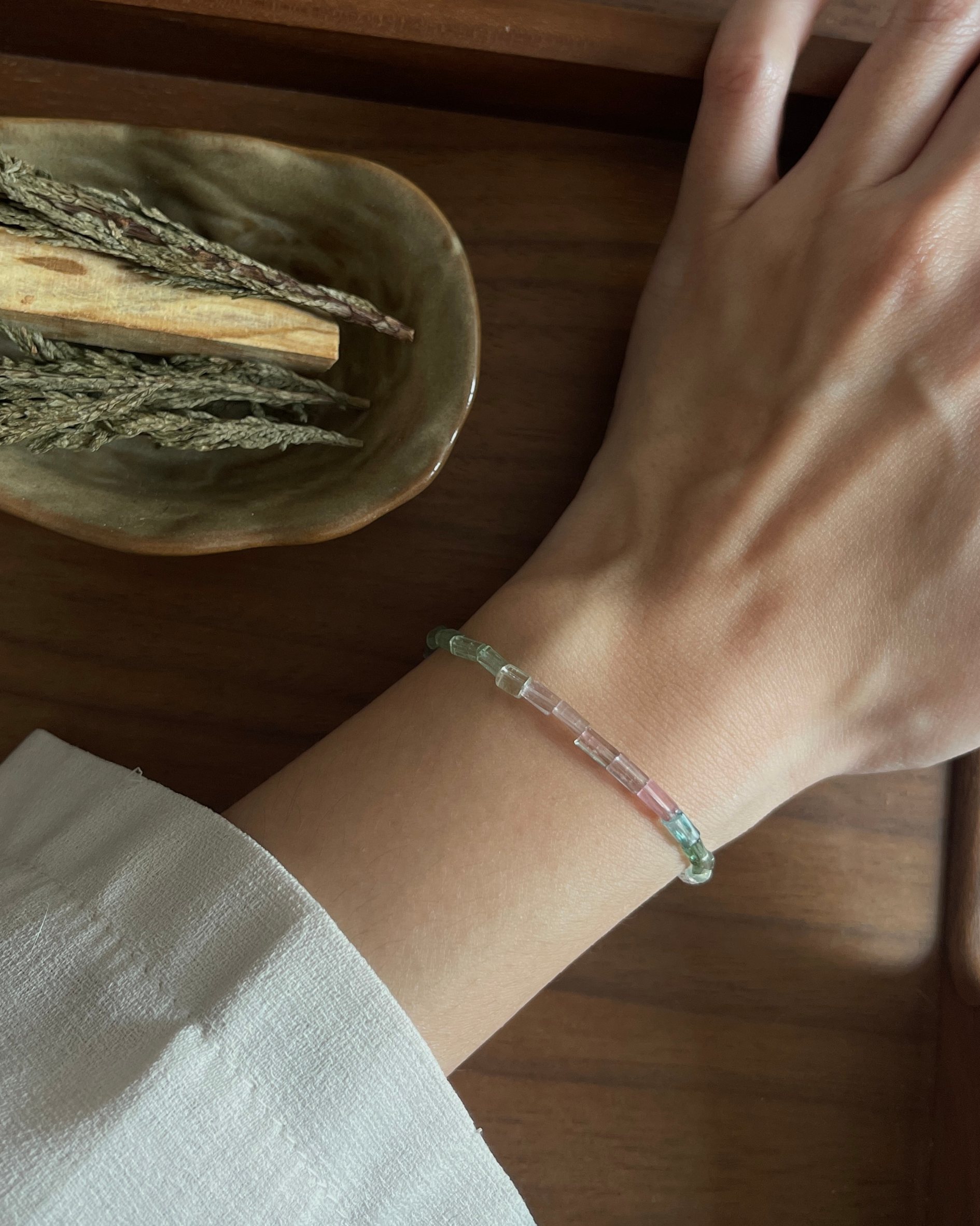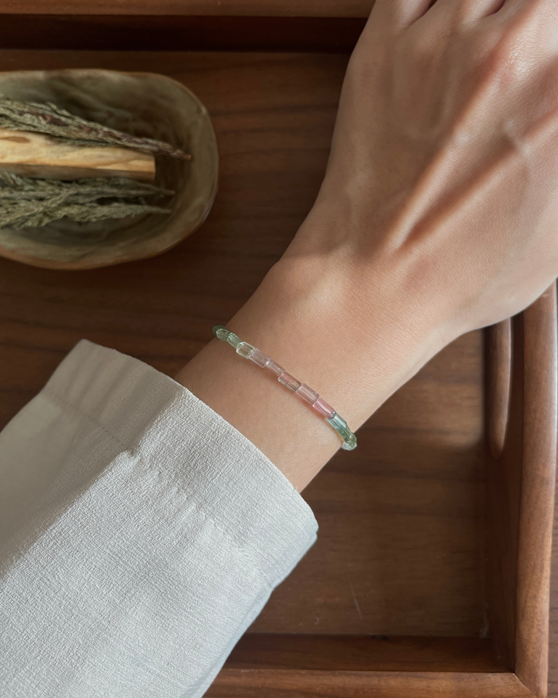 不太规整的碧玺管珠 刚好带出自然和自由
