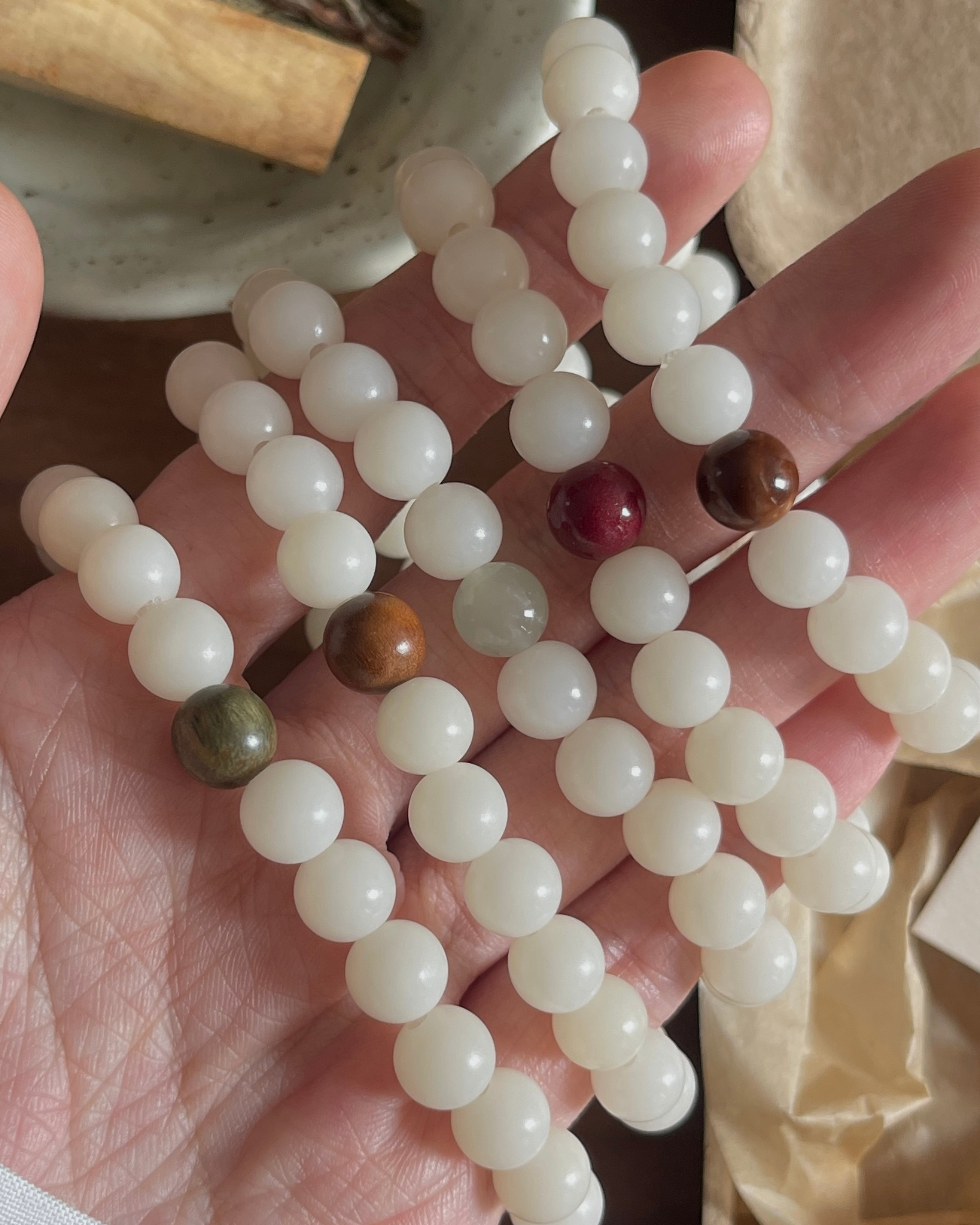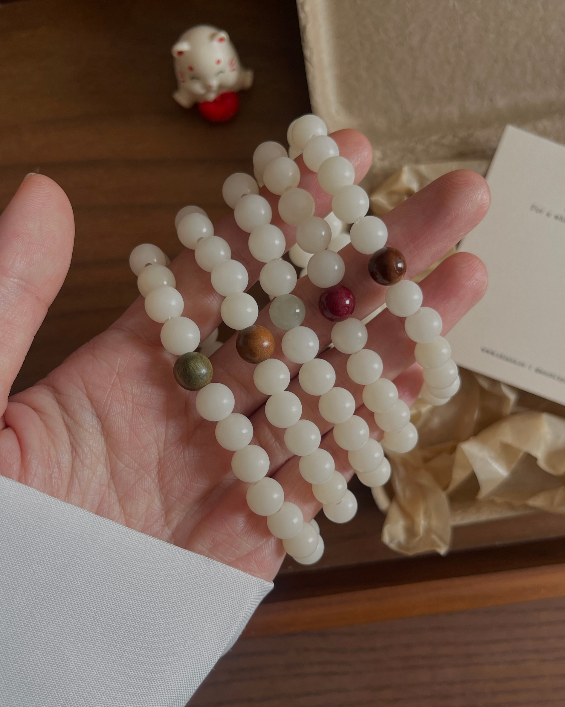 - 水晶、玉石都是独一无二的,每一条都会有少许差别,不会一模一样。
