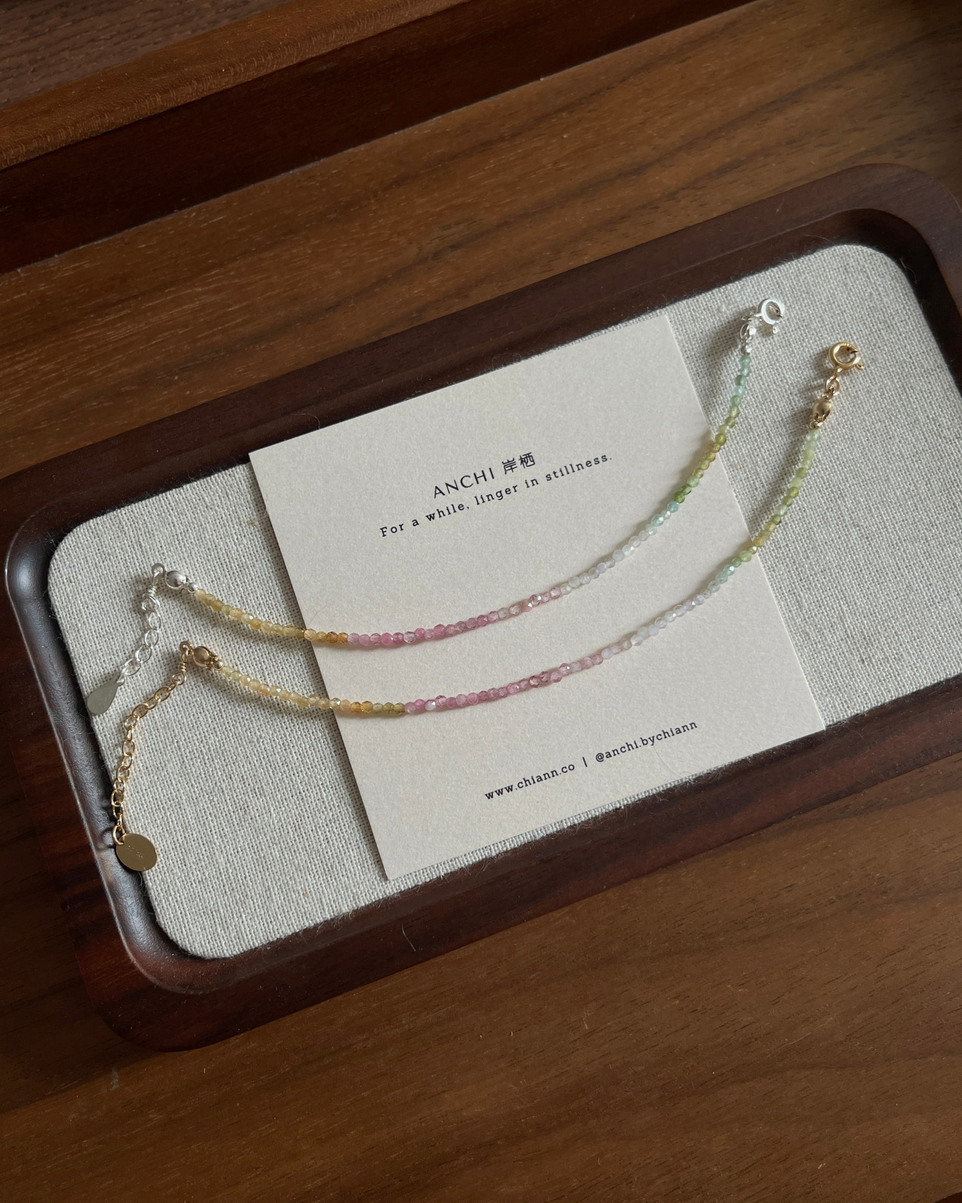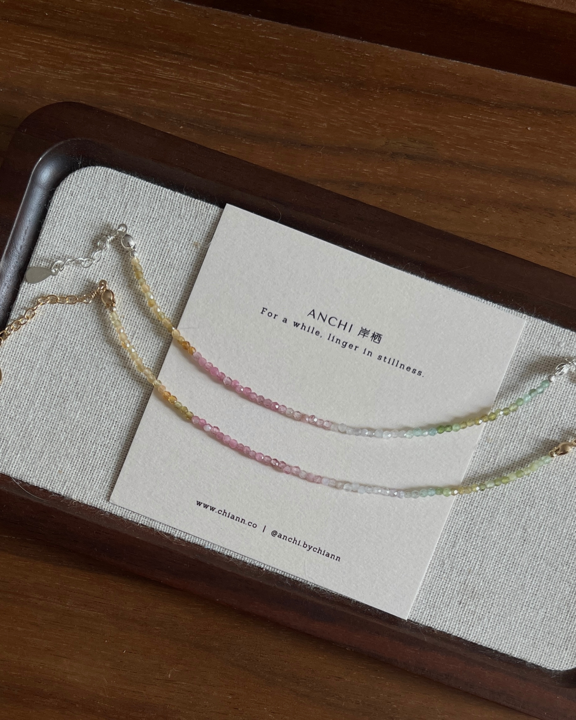 *碧玺颜色五彩缤纷,每一条的颜色可能会有少许不一样,都是独一无二的*