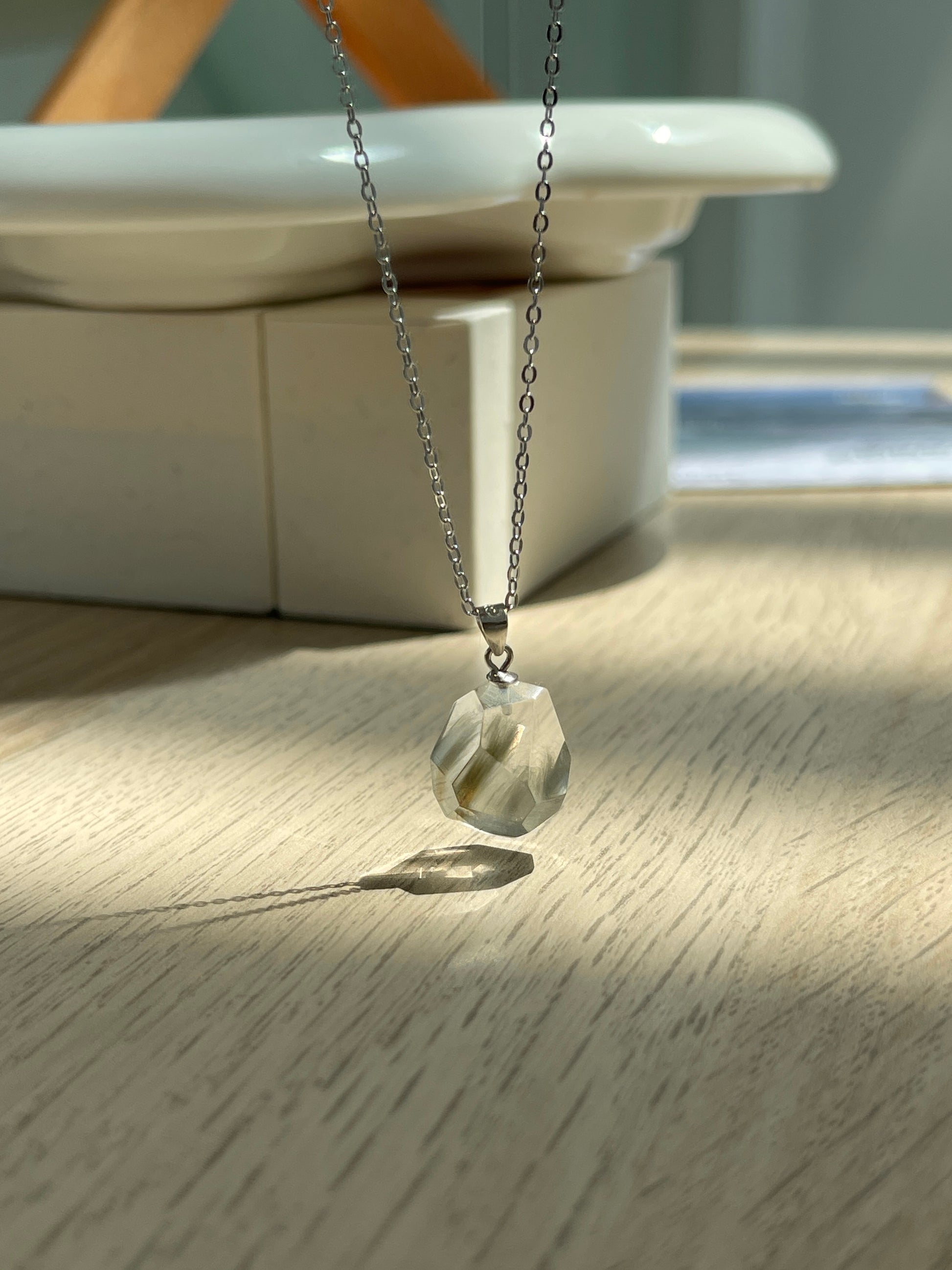 蓝兔毛吊坠 Blue Rabbit Hair Rutilated Quartz Pendant