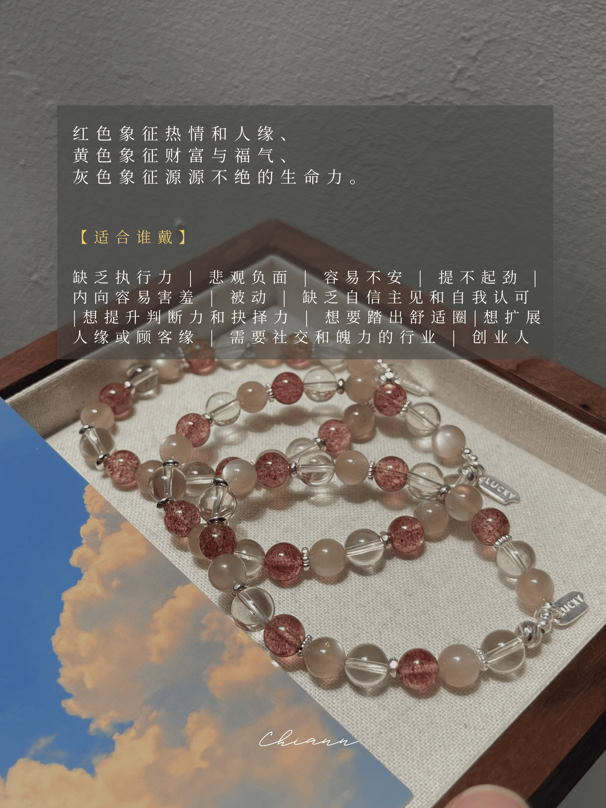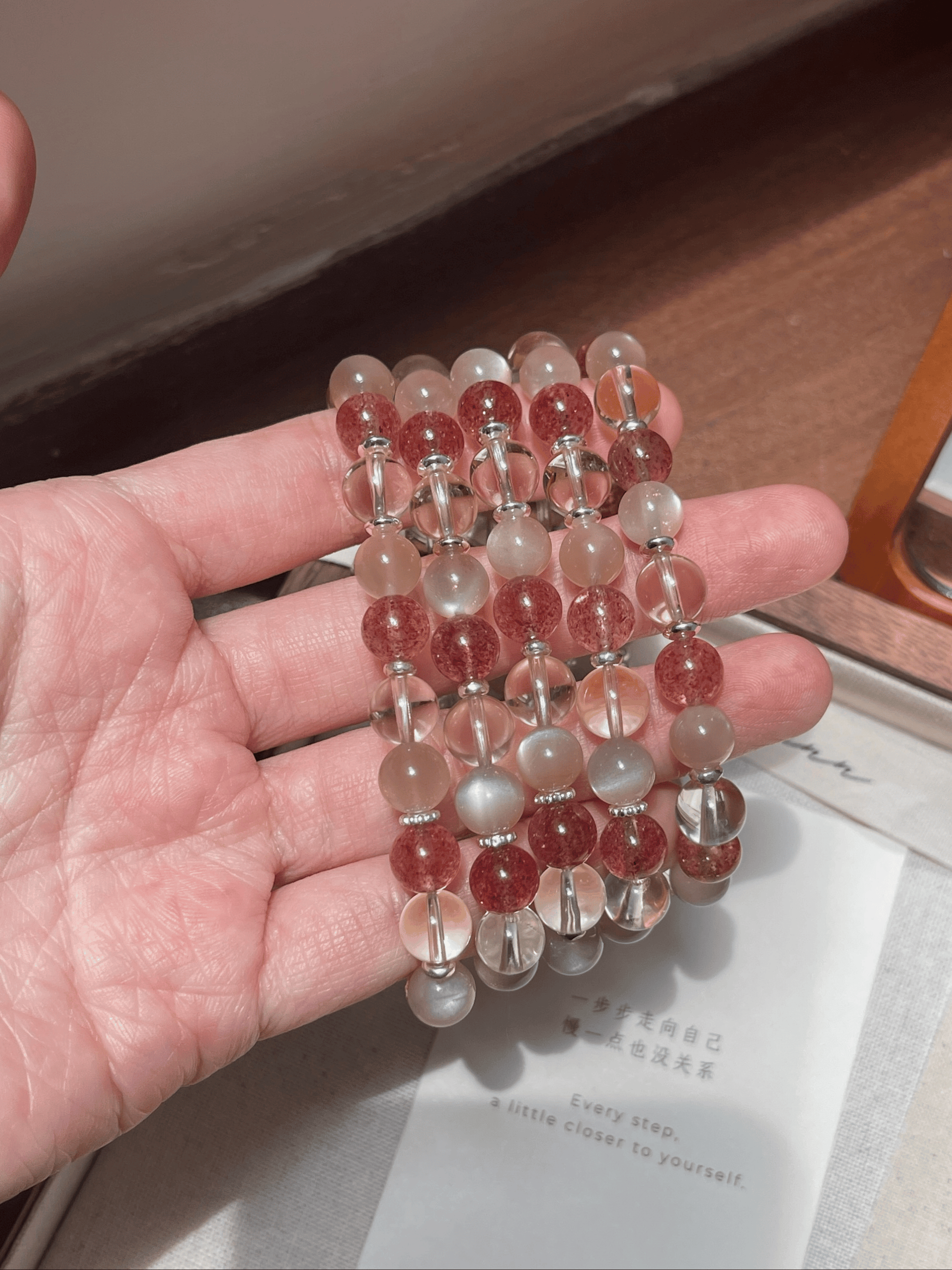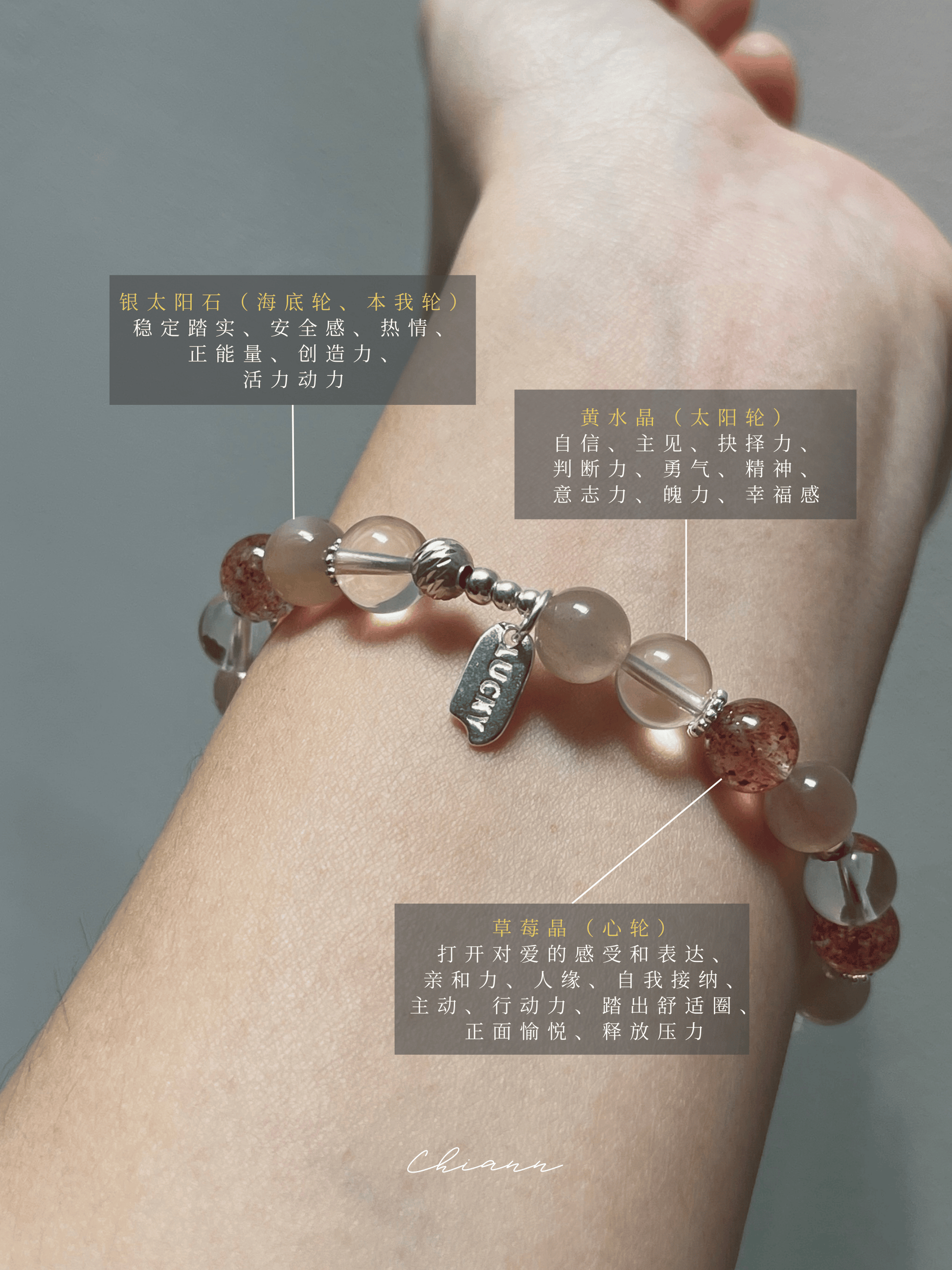 - 水晶、玉石都是独一无二的,每一条都会有少许差别,不会一模一样。