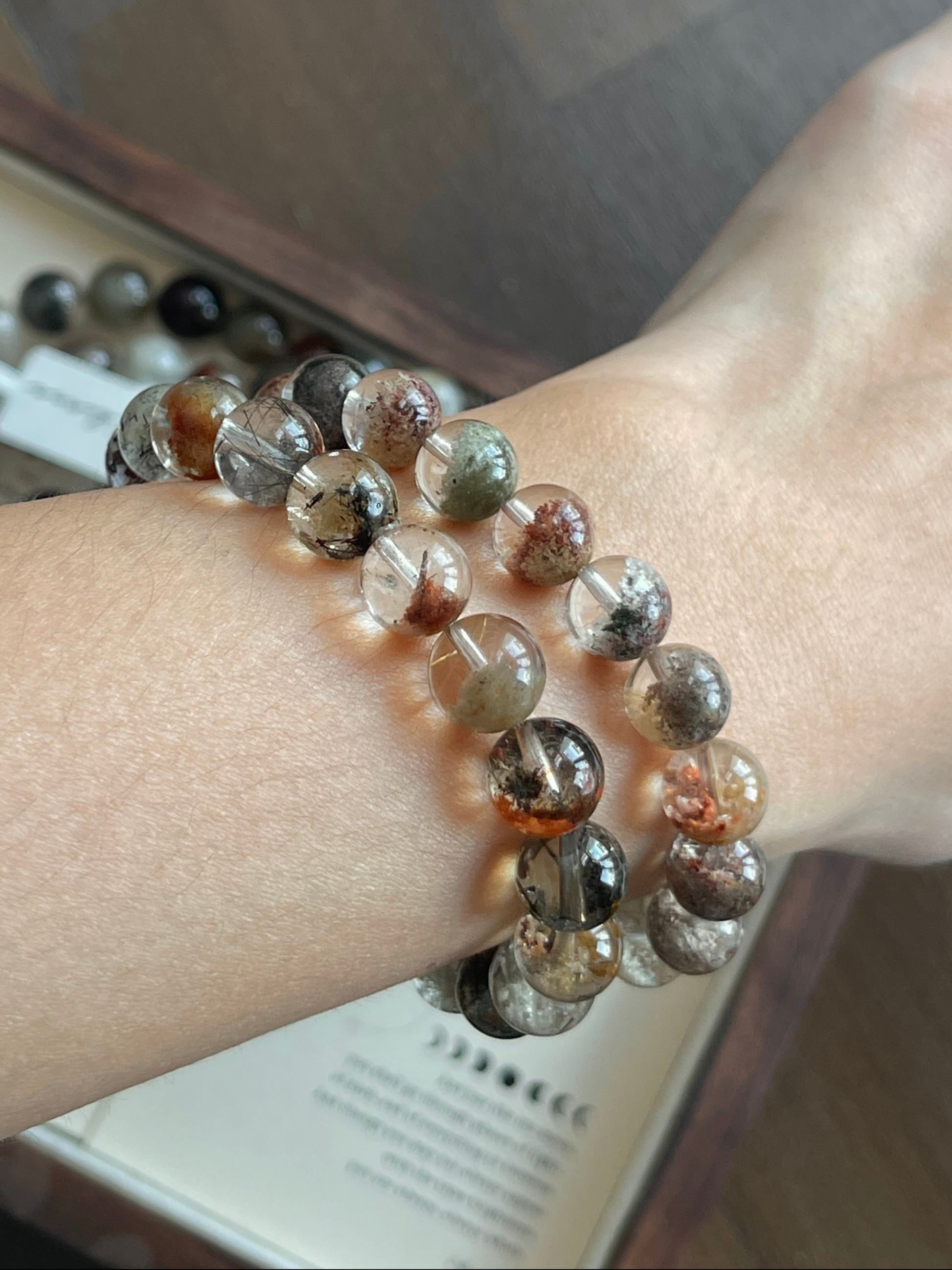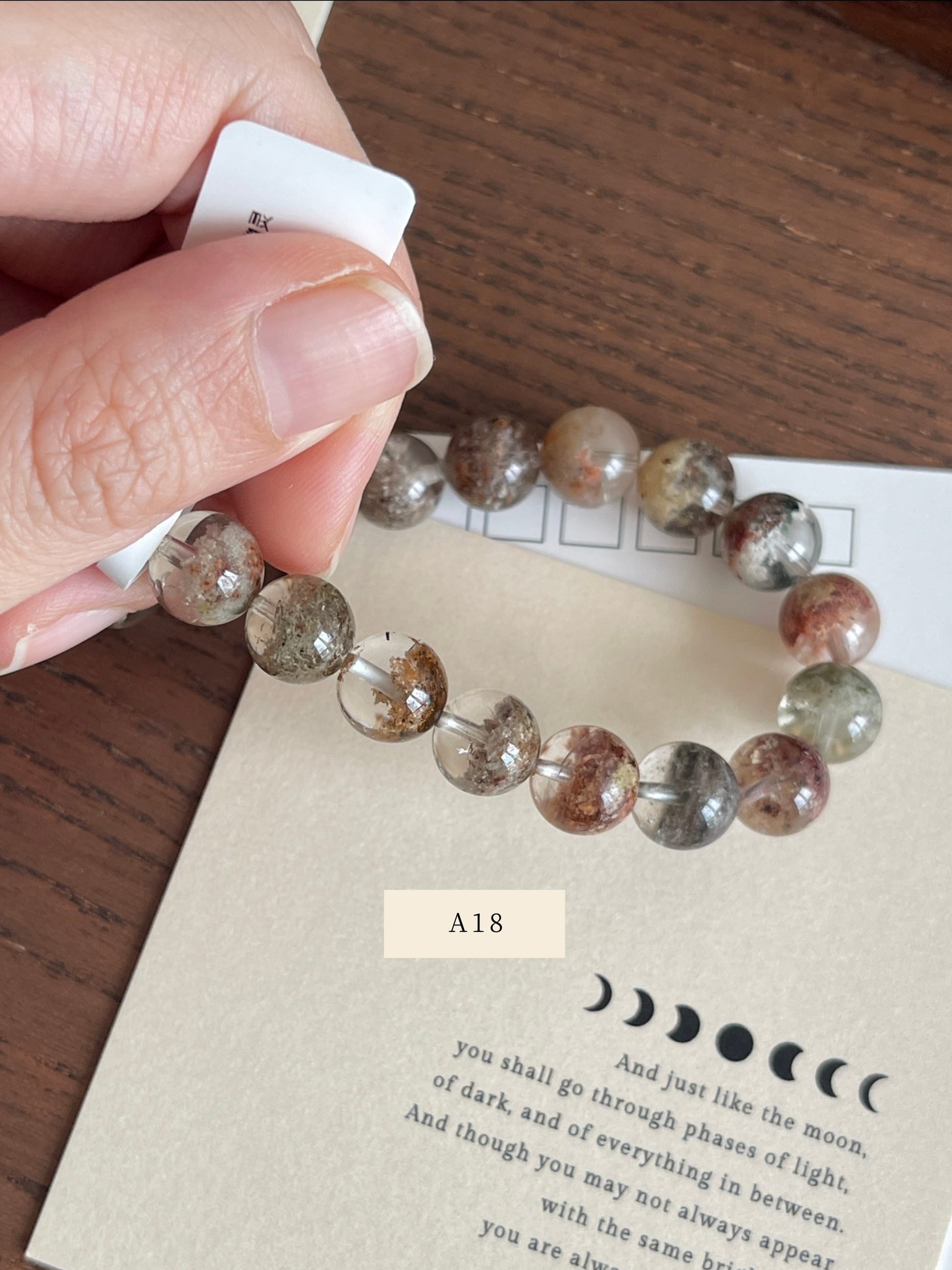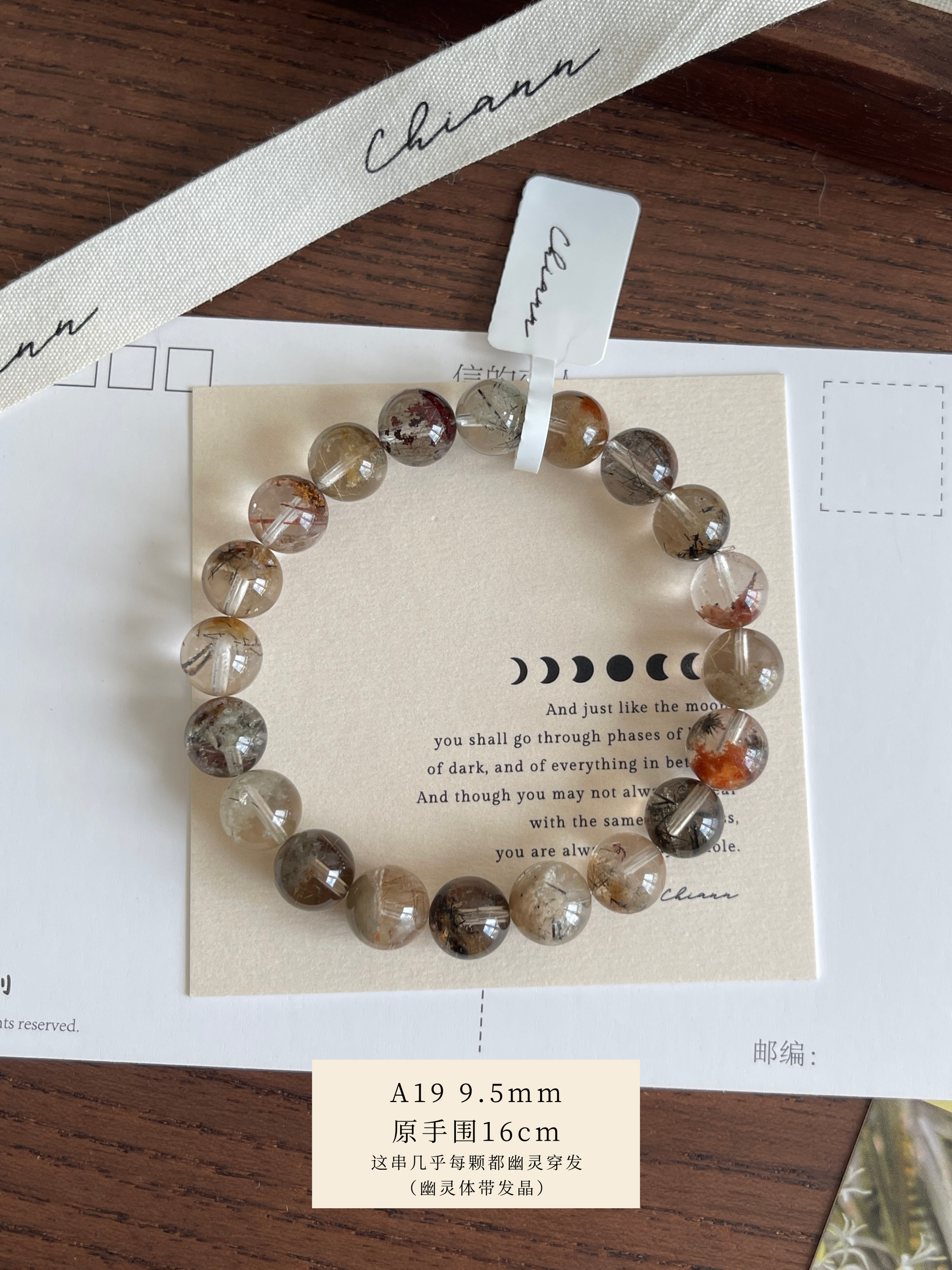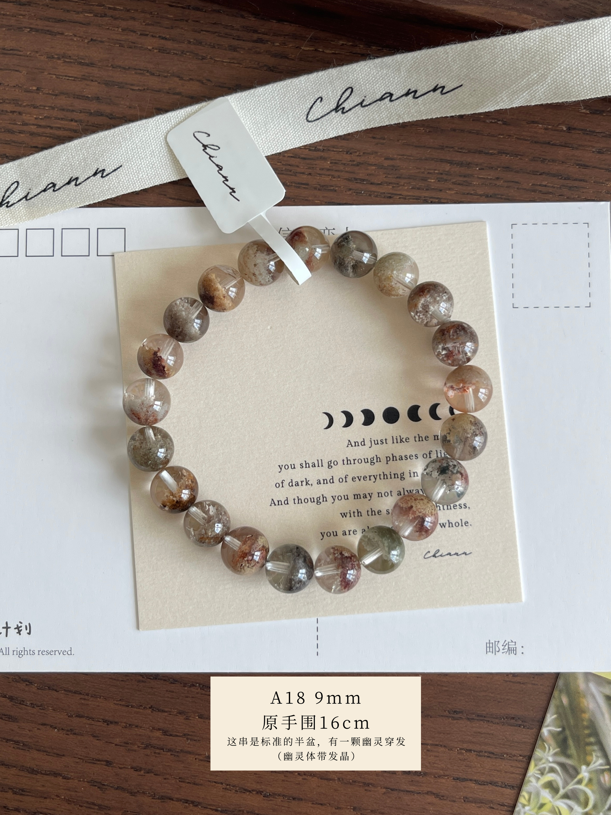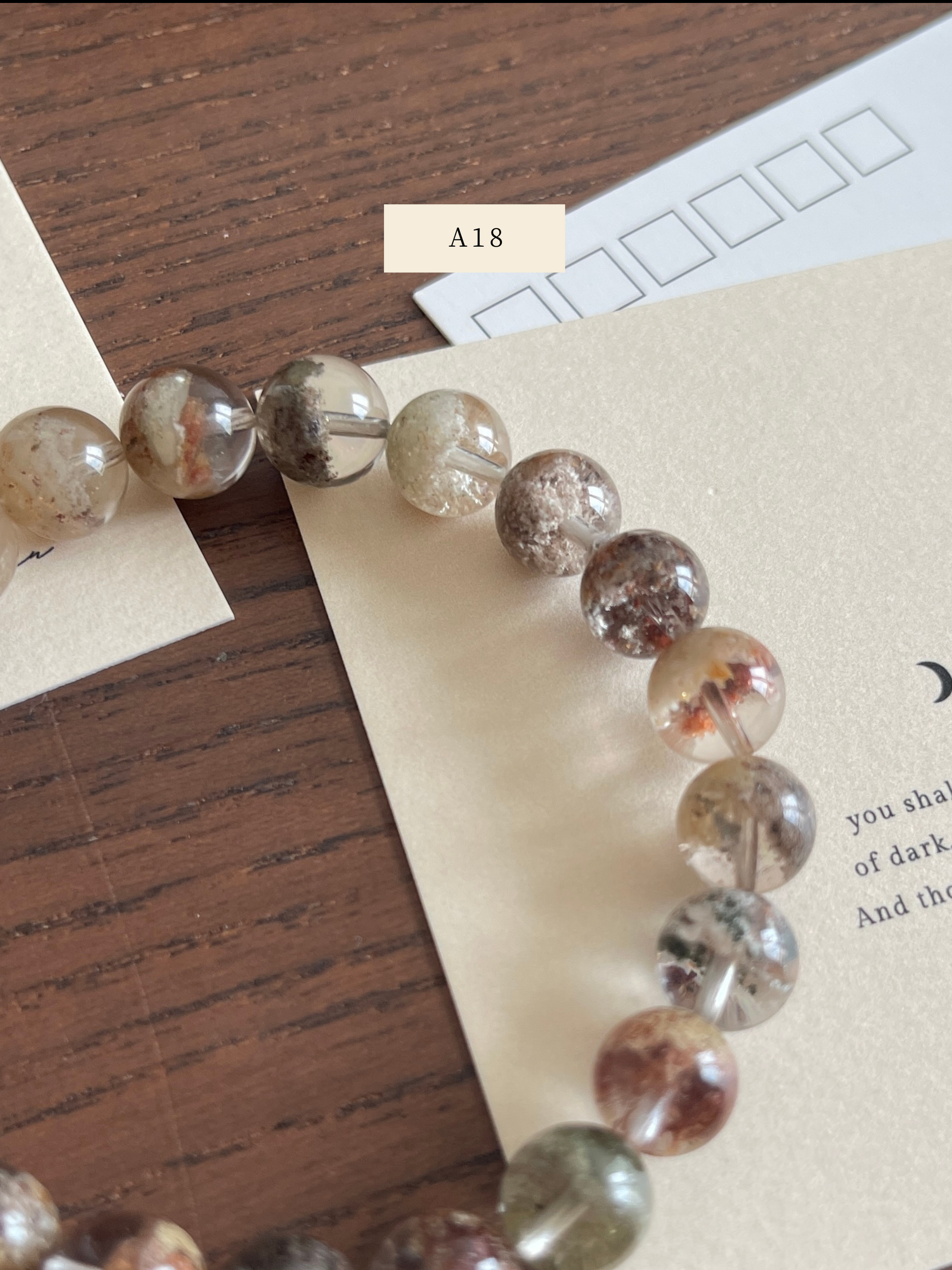 - A18是标准的半盆,晶体透亮,其中一颗珠子有穿发(幽灵体带发丝)