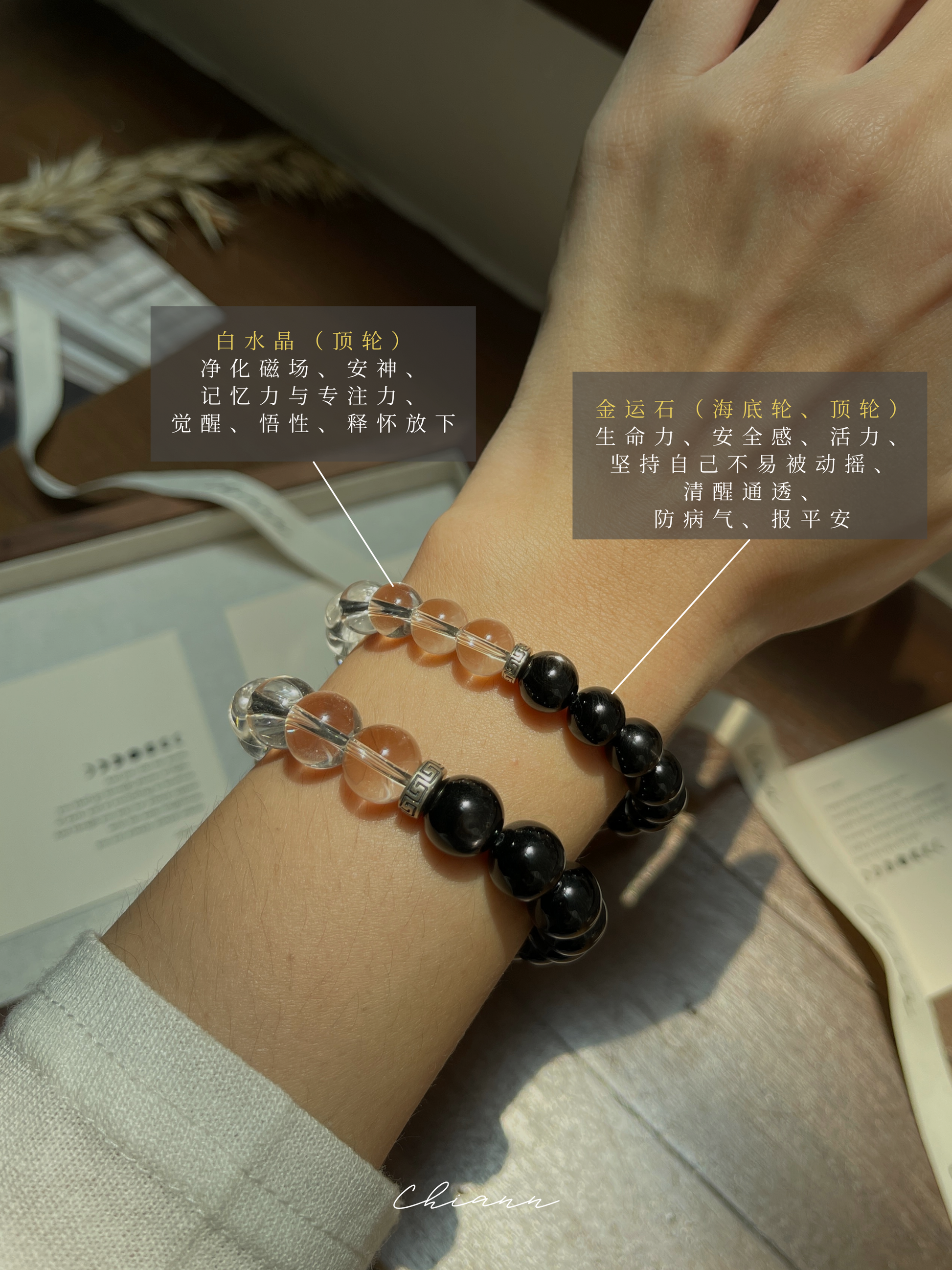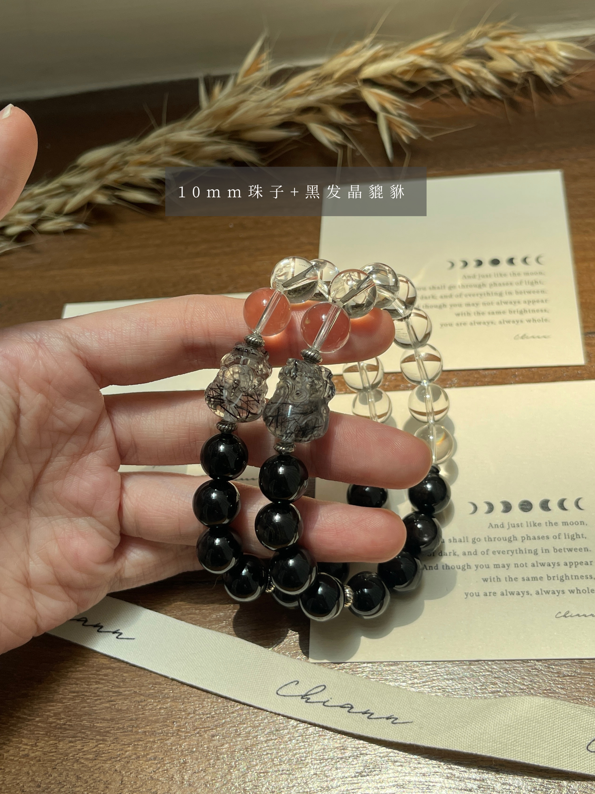 - 水晶、玉石都是独一无二的,每一条都会有少许差别,不会一模一样。