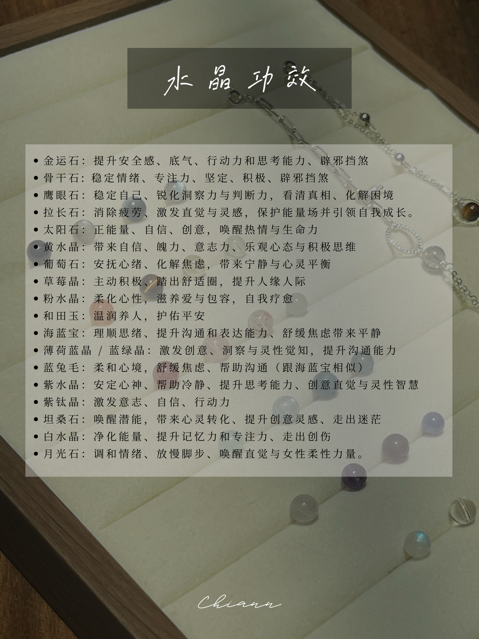 - 水晶、玉石都是独一无二的,每一条都会有少许差别,不会一模一样。