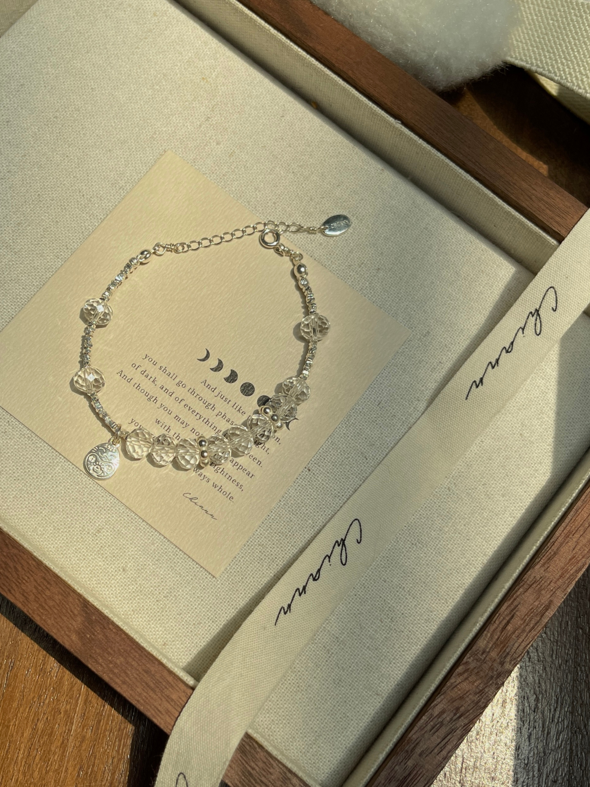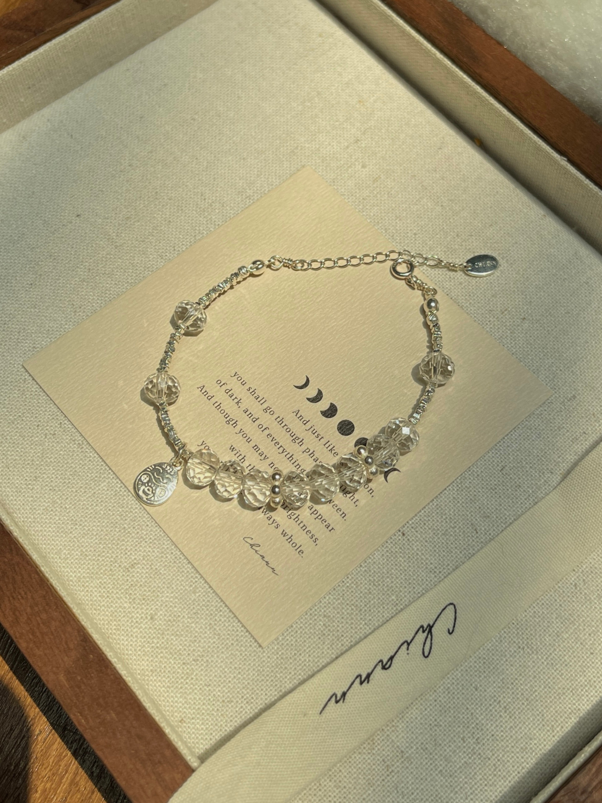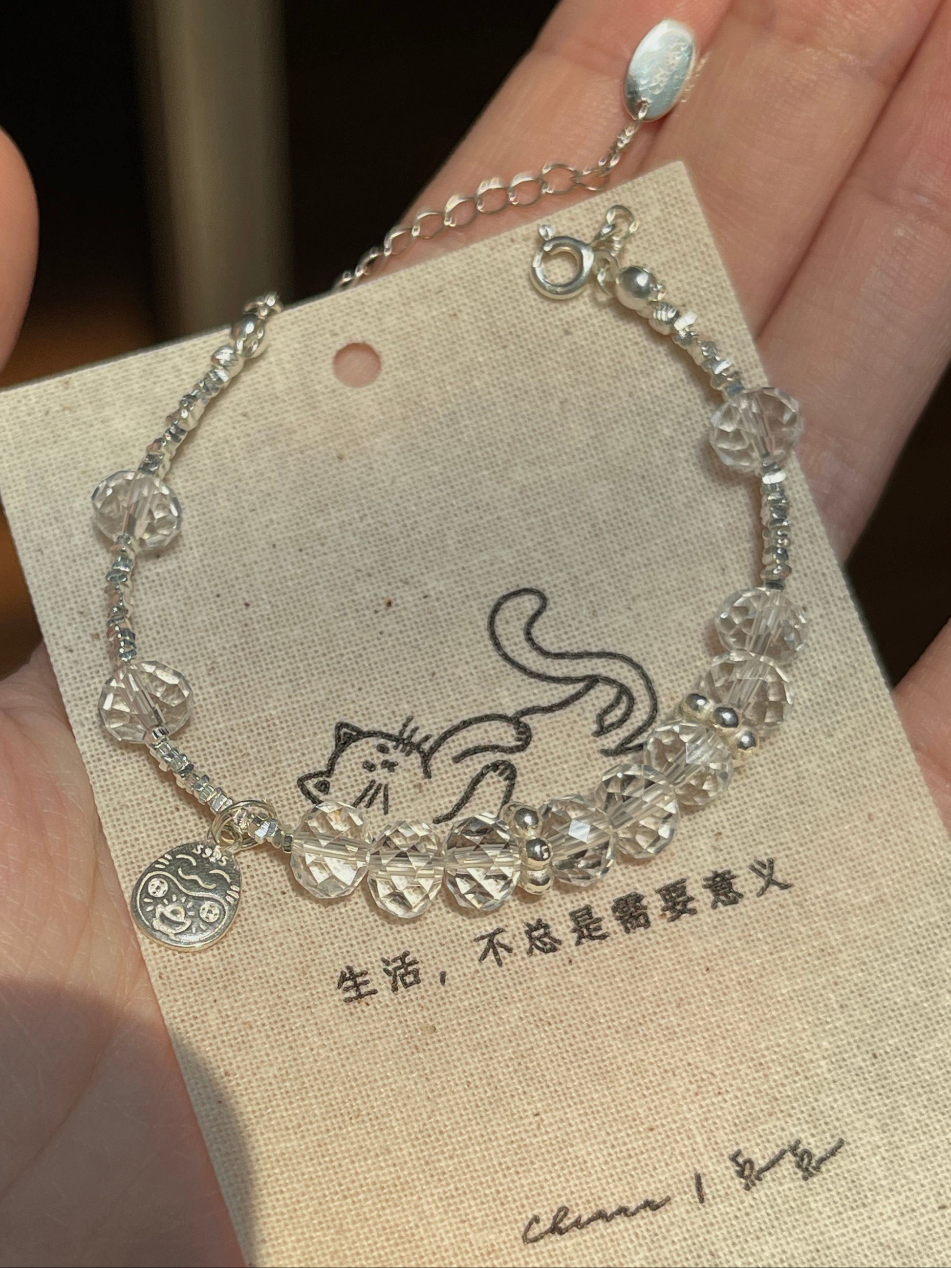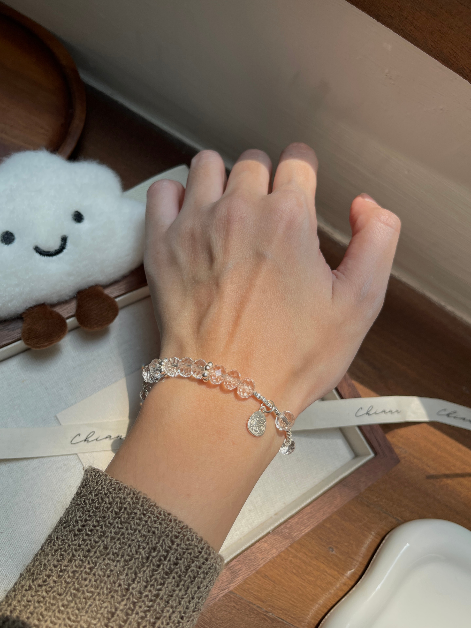 【材质 】 925银 | 盘切白水晶(宽 7.5mm 左右)