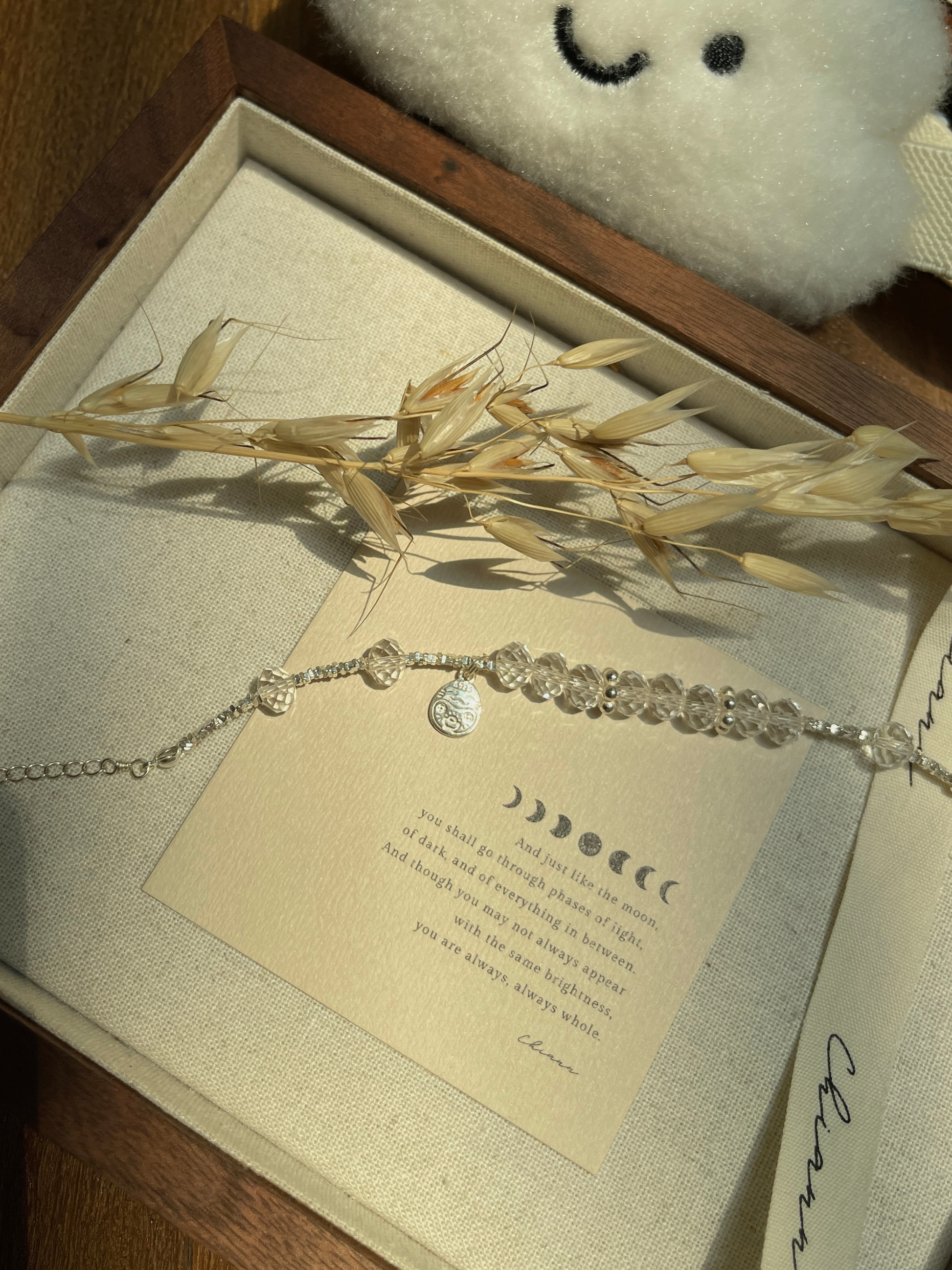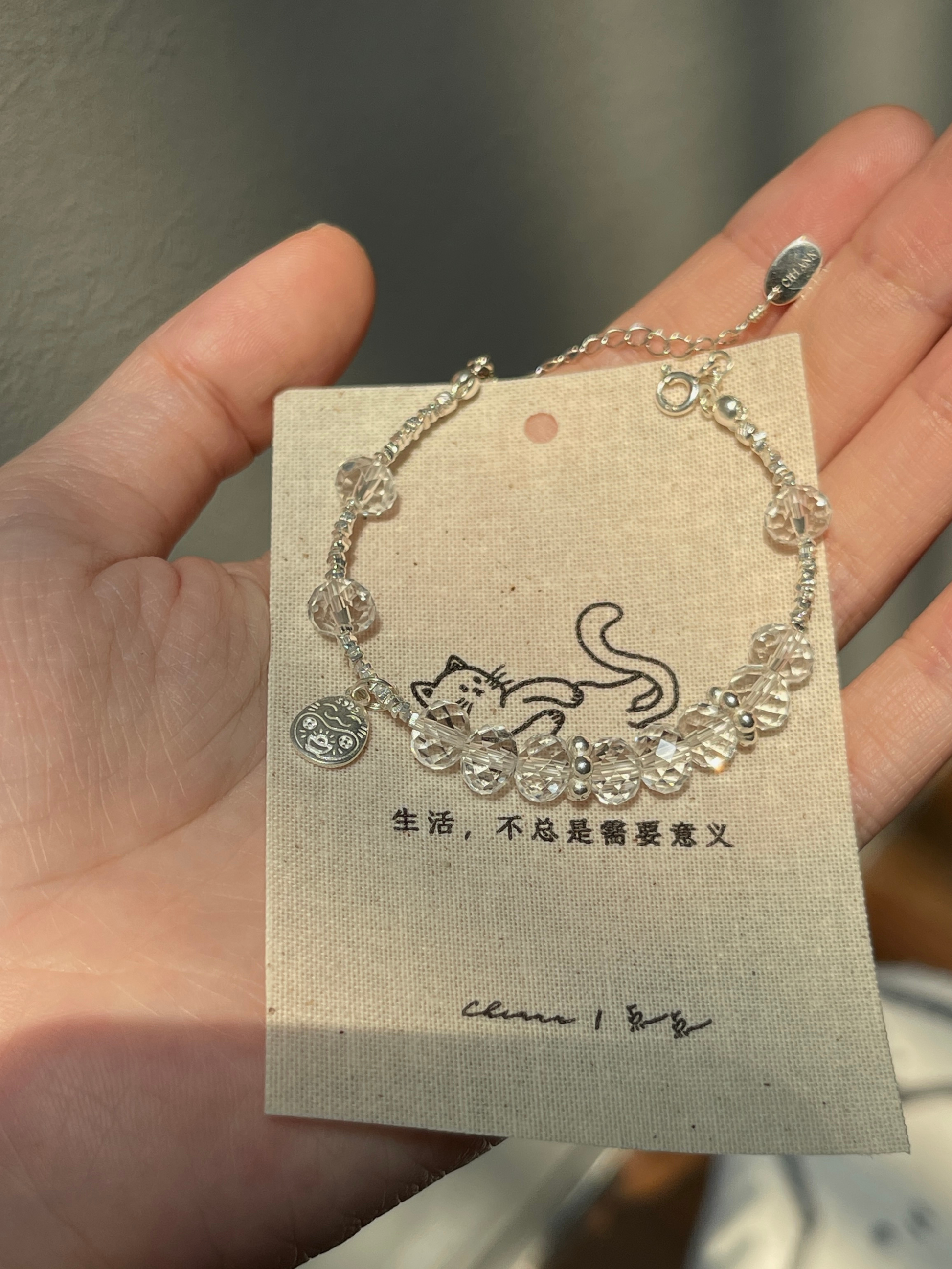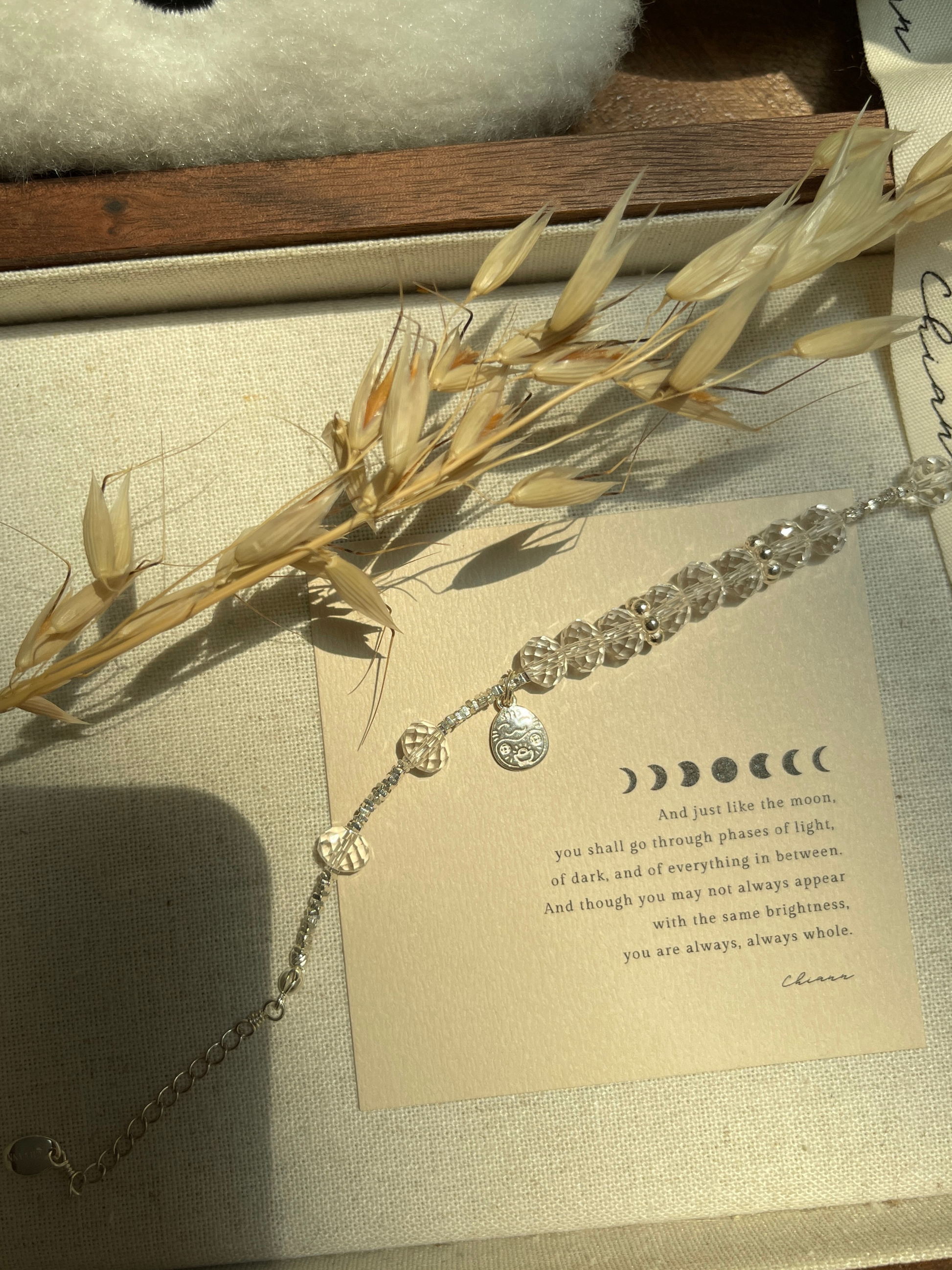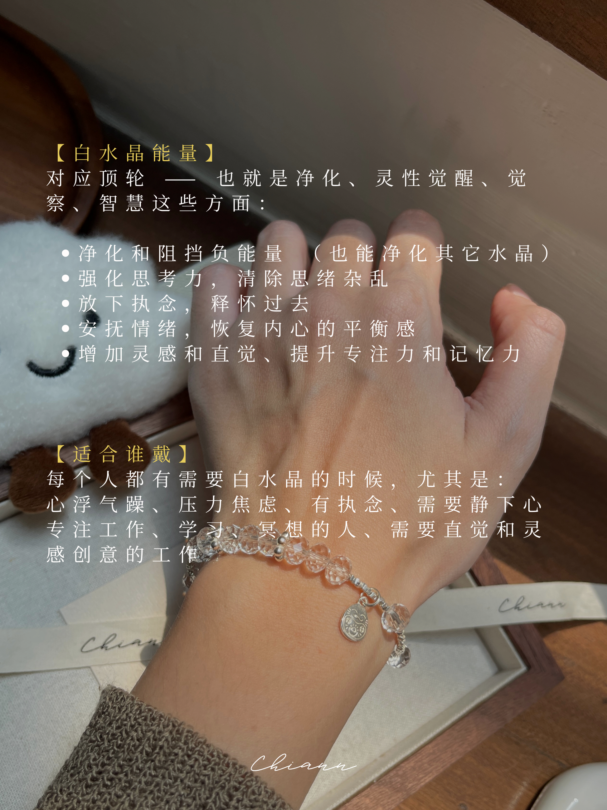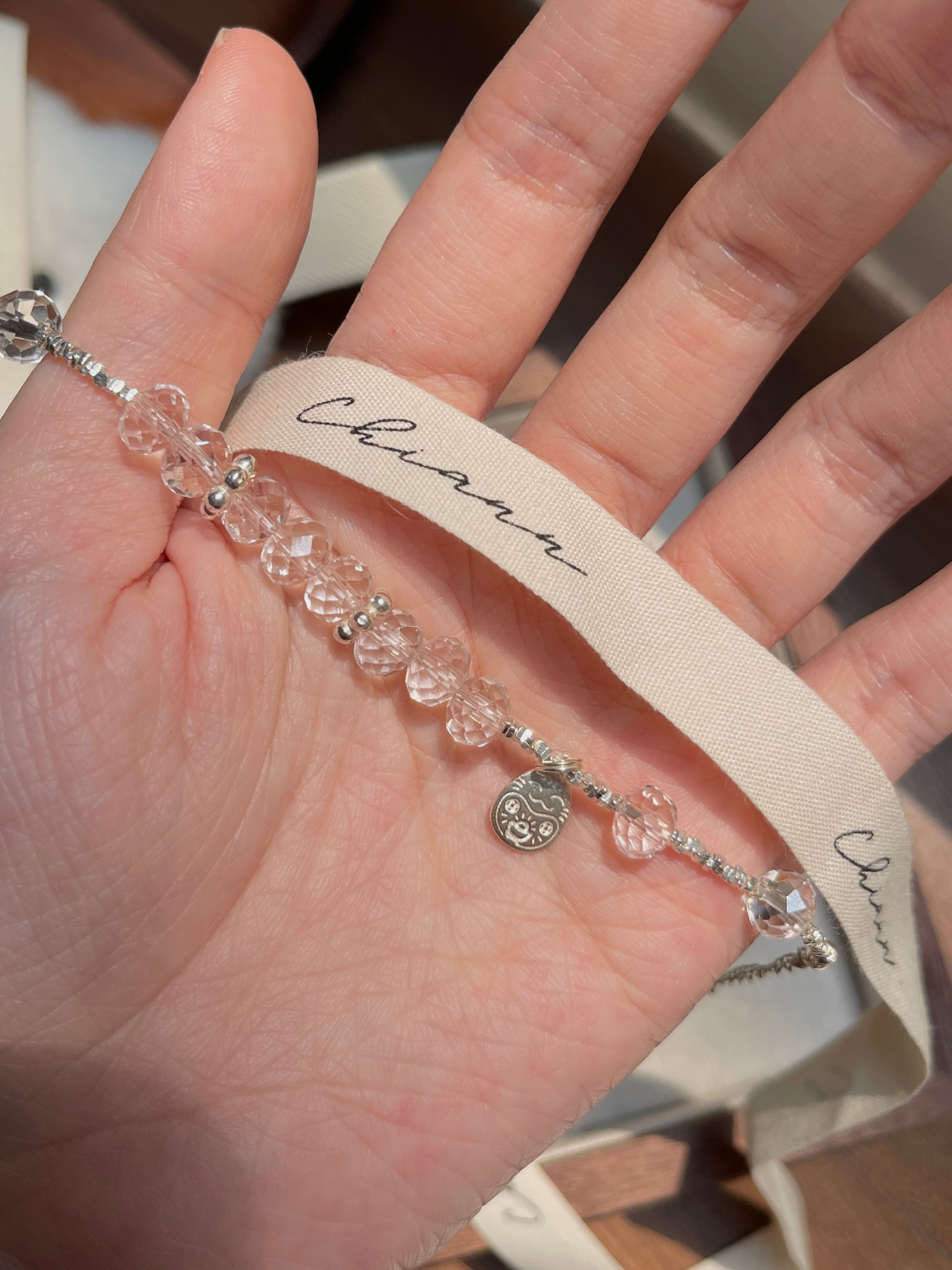 【材质 】 925银 | 盘切白水晶(宽 7.5mm 左右)