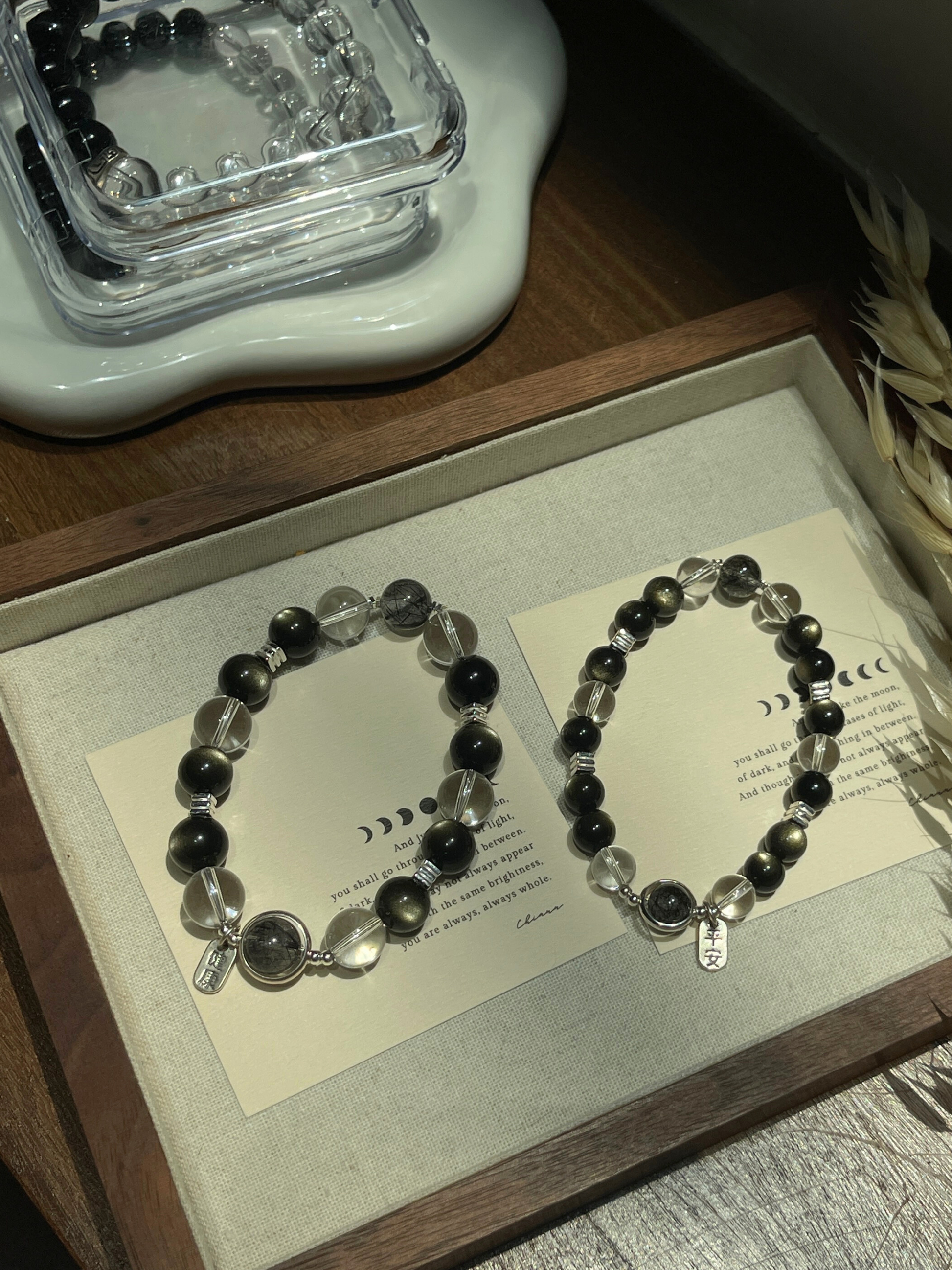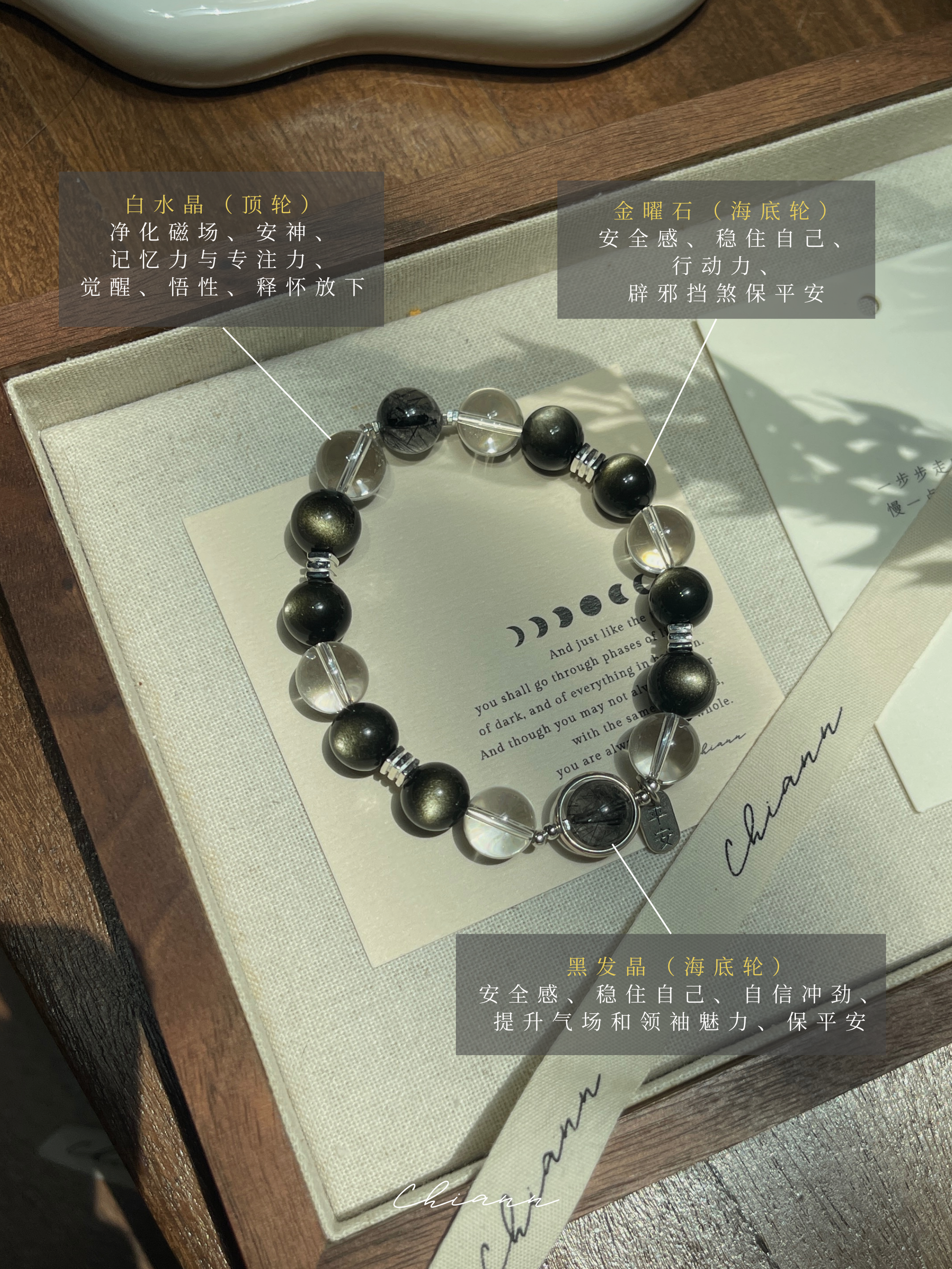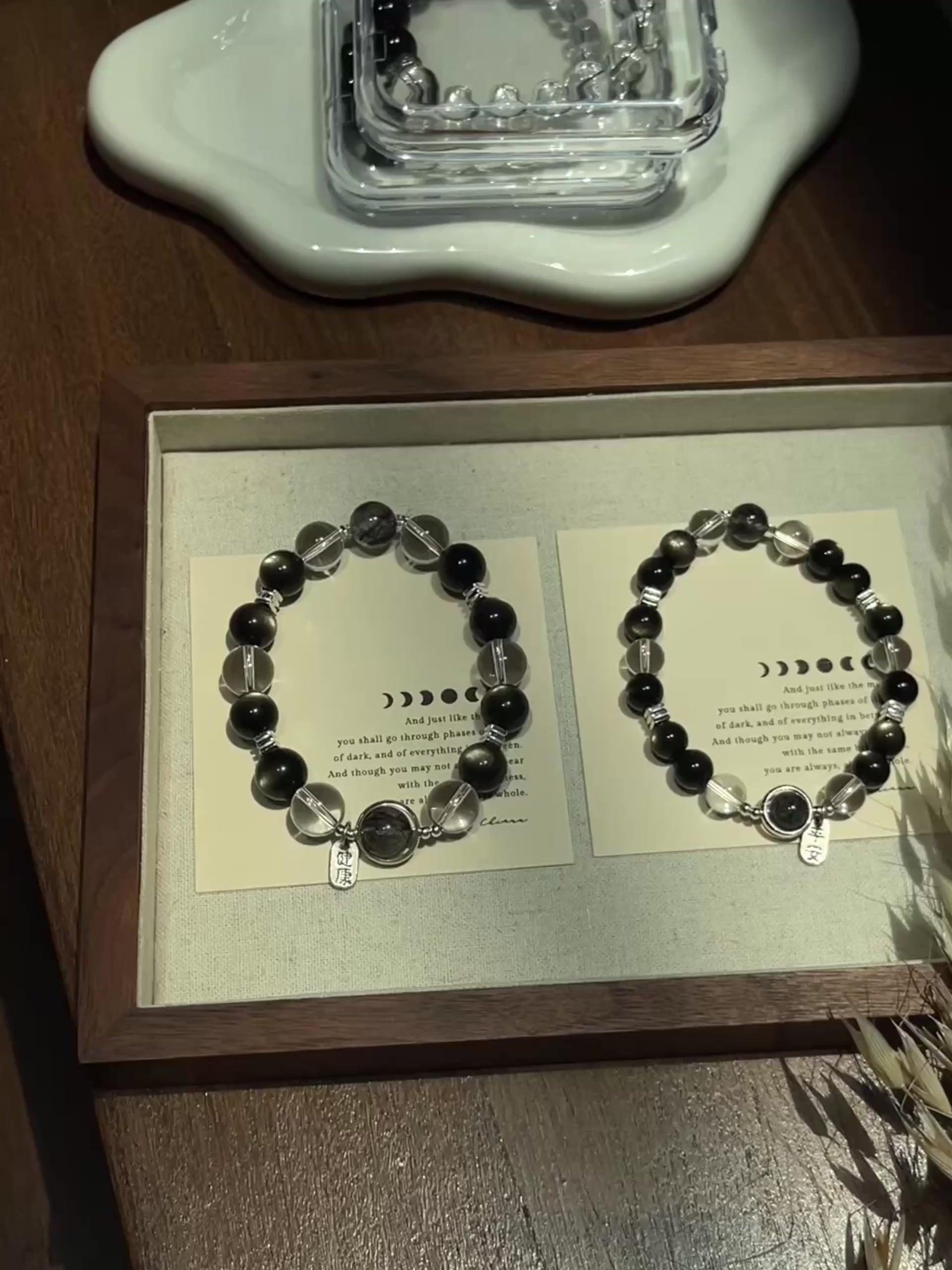 - 水晶、玉石都是独一无二的,每一条都会有少许差别,不会一模一样。