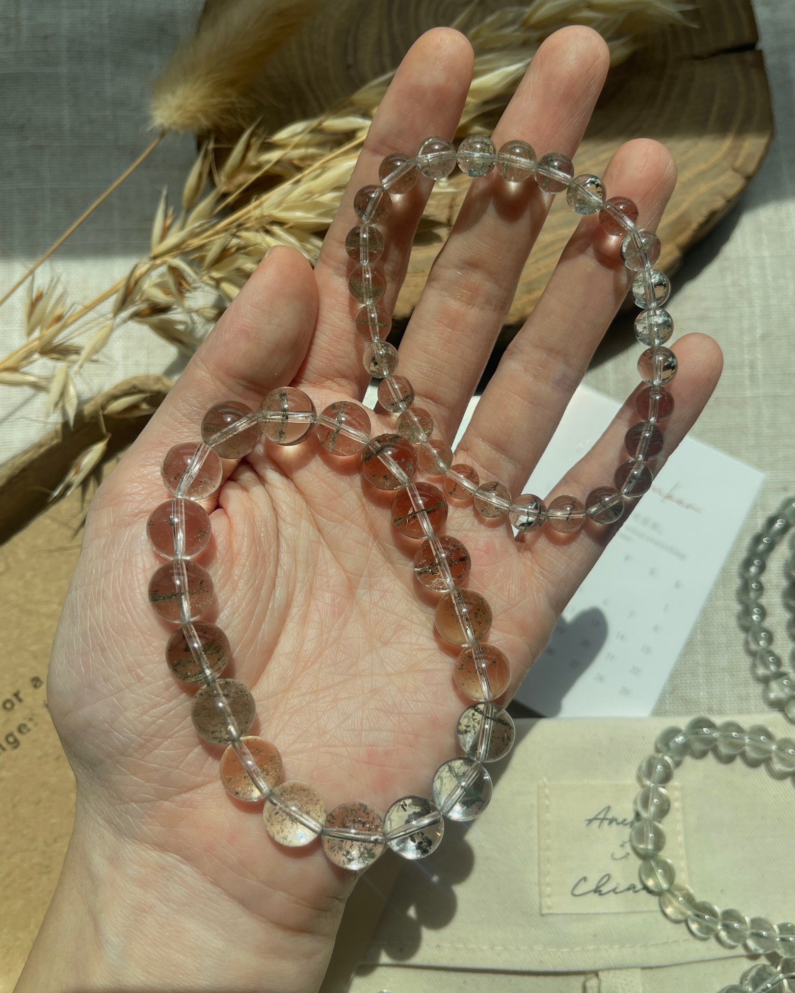 - 水晶、玉石都是独一无二的,每一条都会有少许差别,不会一模一样。